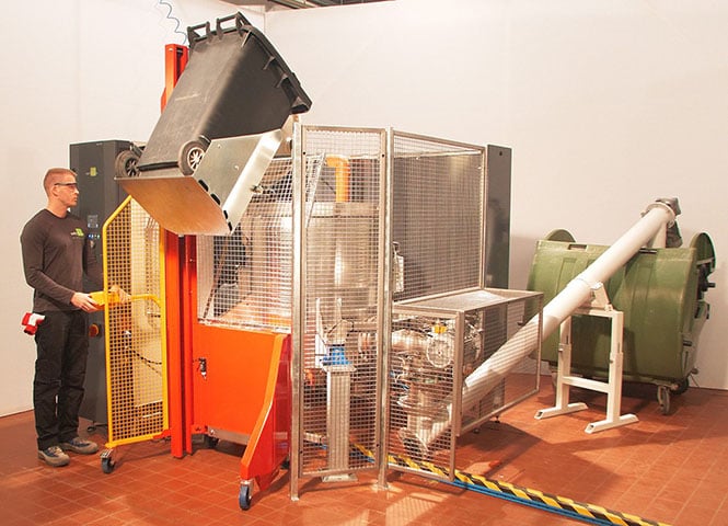 The high grade (316L) stainless steel vessel conforms to the Pressure Equipment Directive (PED) and is fitted with a motor-driven shaft, with powerful shredding / crushing blades that can rotate in two directions to reduce the size and volume of the waste down to 20%. The vessel is constructed with internal sprinklers for automatic cleaning and is equipped with one door, provided with an automatic locking mechanism.